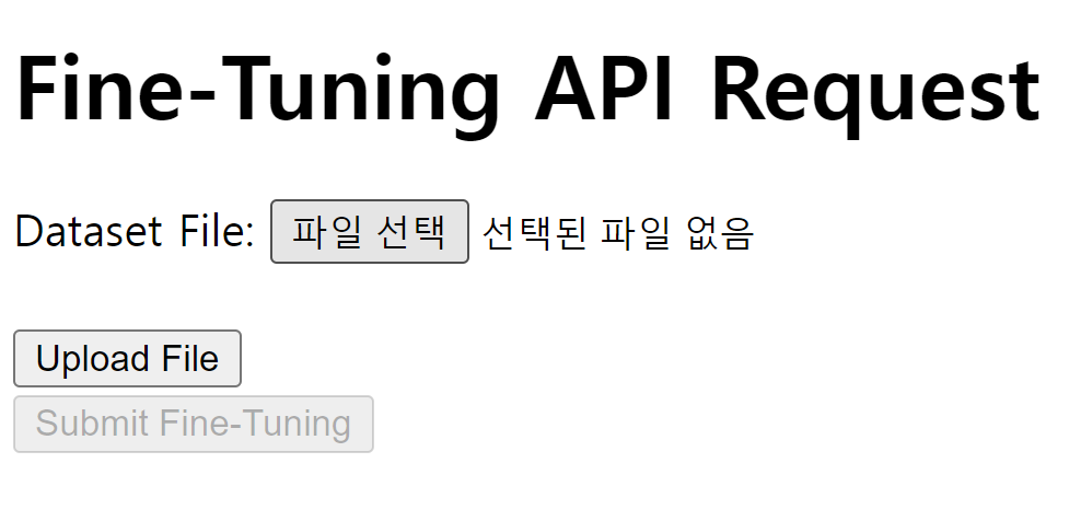 - 파일을 선택하고 업로드하면 Fine-Tuning에 필요한 파일을 OpenAI API로 전송합니다.